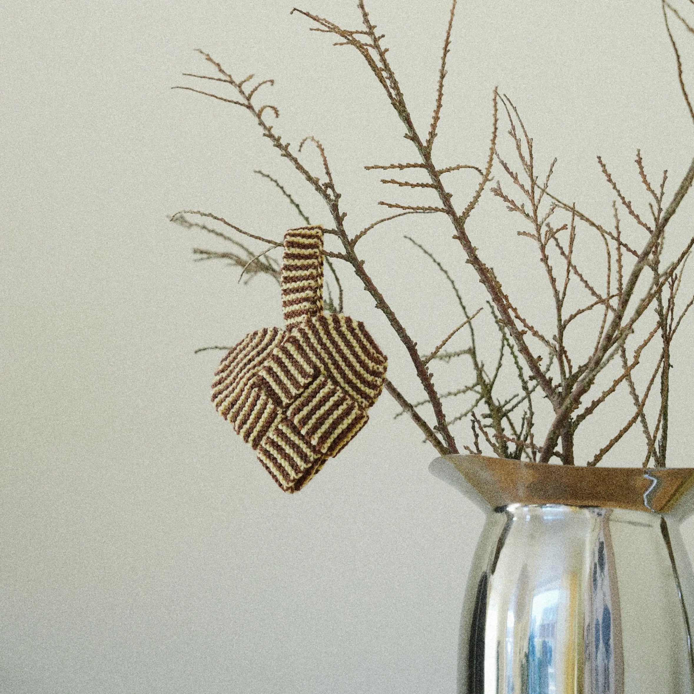 Det færdige hjerte måler ca. 10x10 cm og kan enten gives som en hjertevarm gave eller hænges op som julepynt.